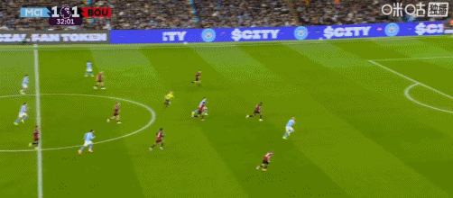 第34分钟,曼城持续威胁进攻,可惜没把握住机会